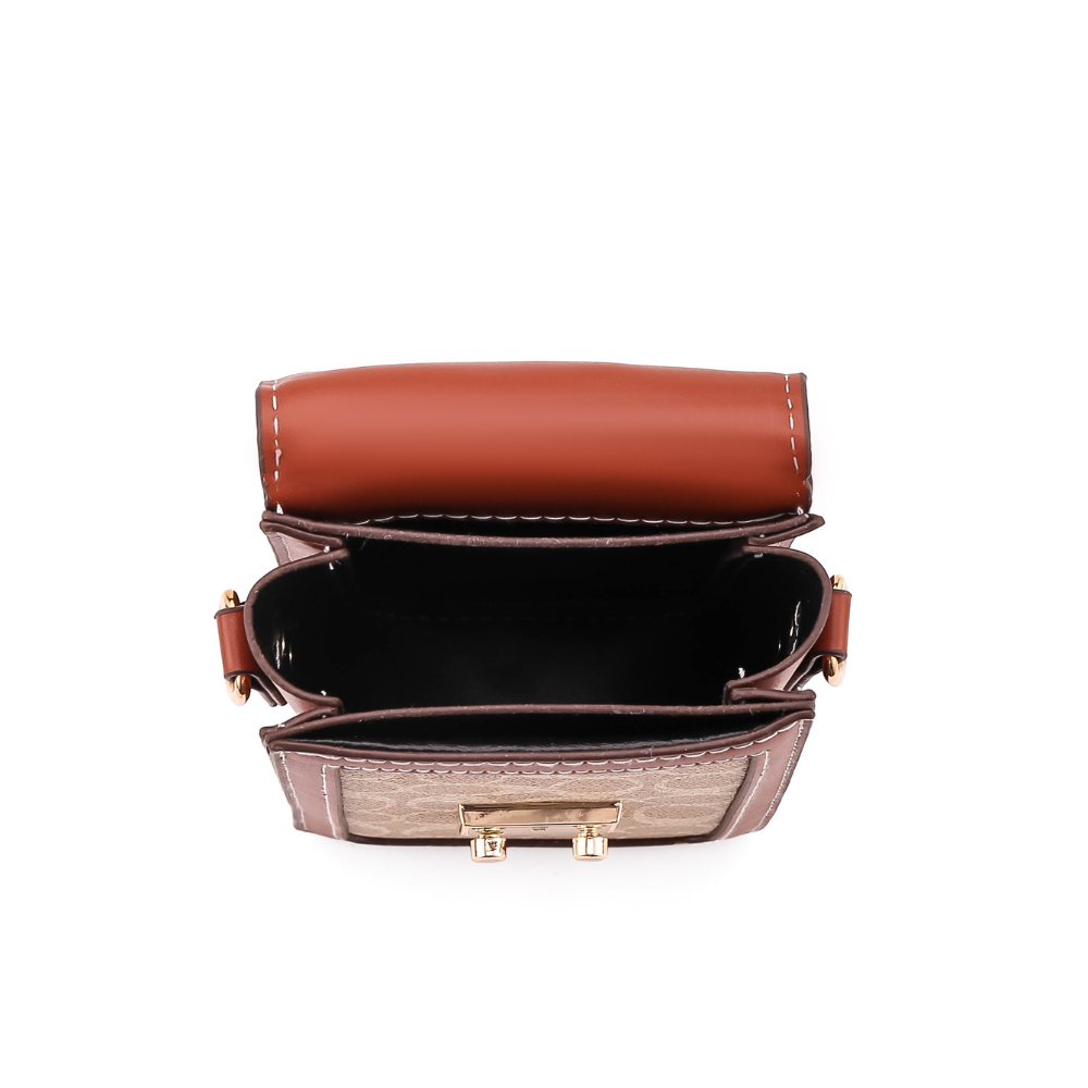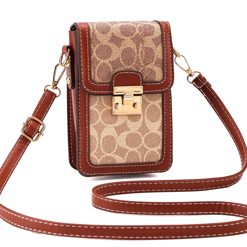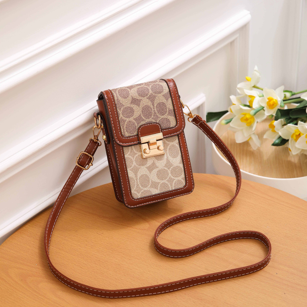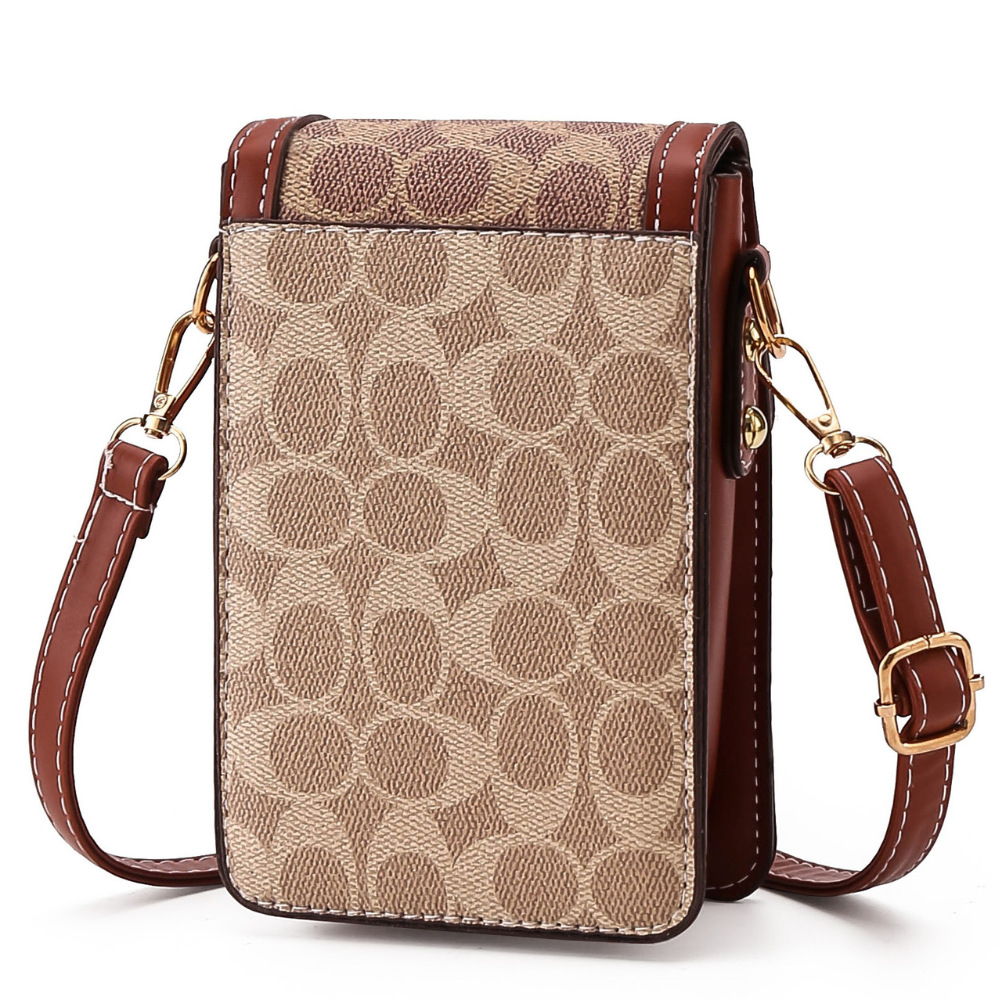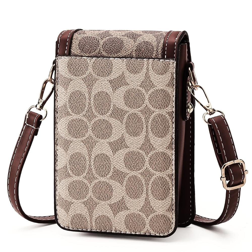 Chic, compact, and designed for life on the go — the Diva Dale Patterned Textured Crossbody Phone Bag is the ultimate accessory for smart, stylish carrying. Featuring a distinctive geometric texture in a warm brown and cream color palette, this mini messenger bag is available with unique trims — from rich dark brown to fresh green accents — adding a touch of personality to your everyday essentials.