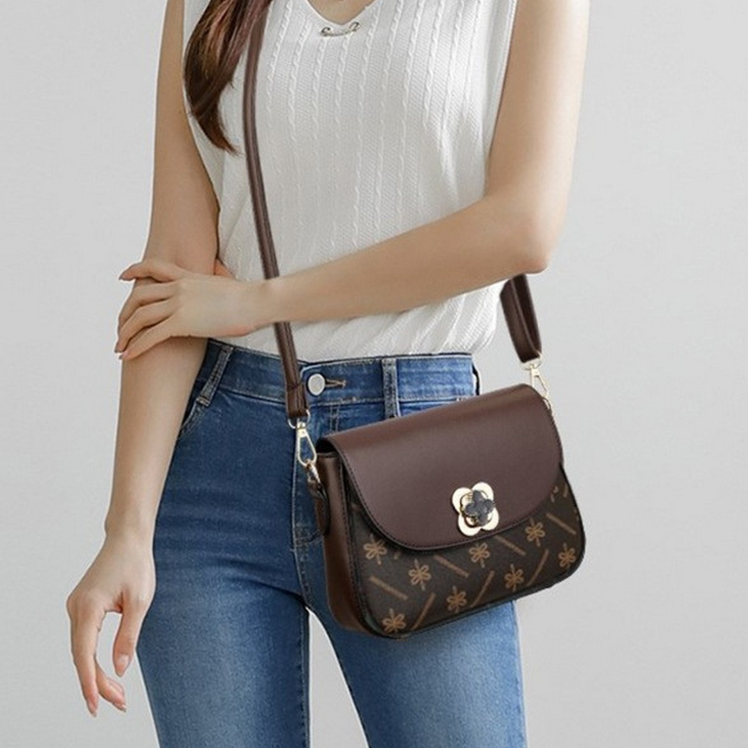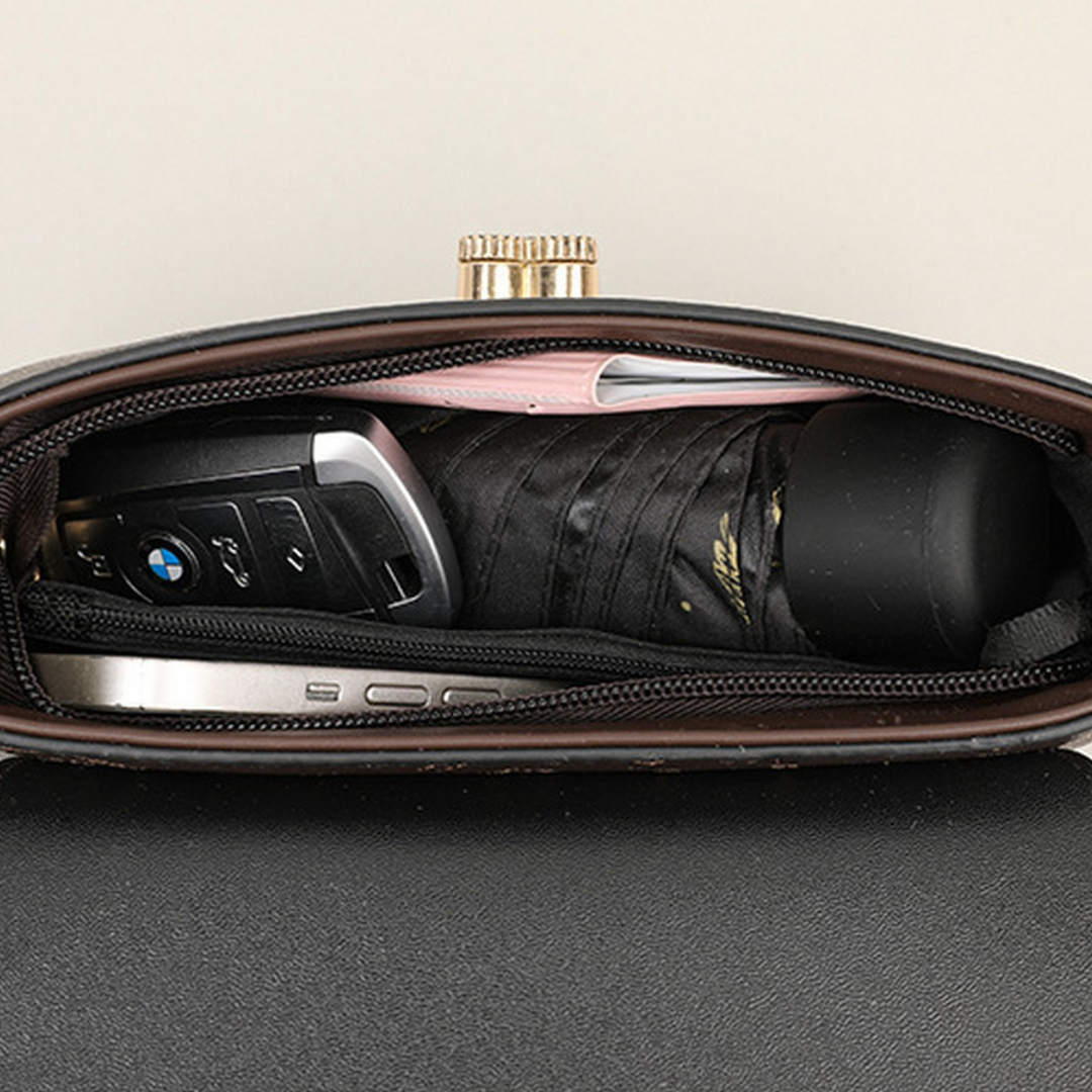 The show-stealer? A unique clover-shaped clasp in gleaming gold-tone and dark grey, giving the bag a modern yet timeless charm. Whether you're dressing up a casual brunch outfit or heading out for an evening stroll, this bag adds instant polish to your ensemble.