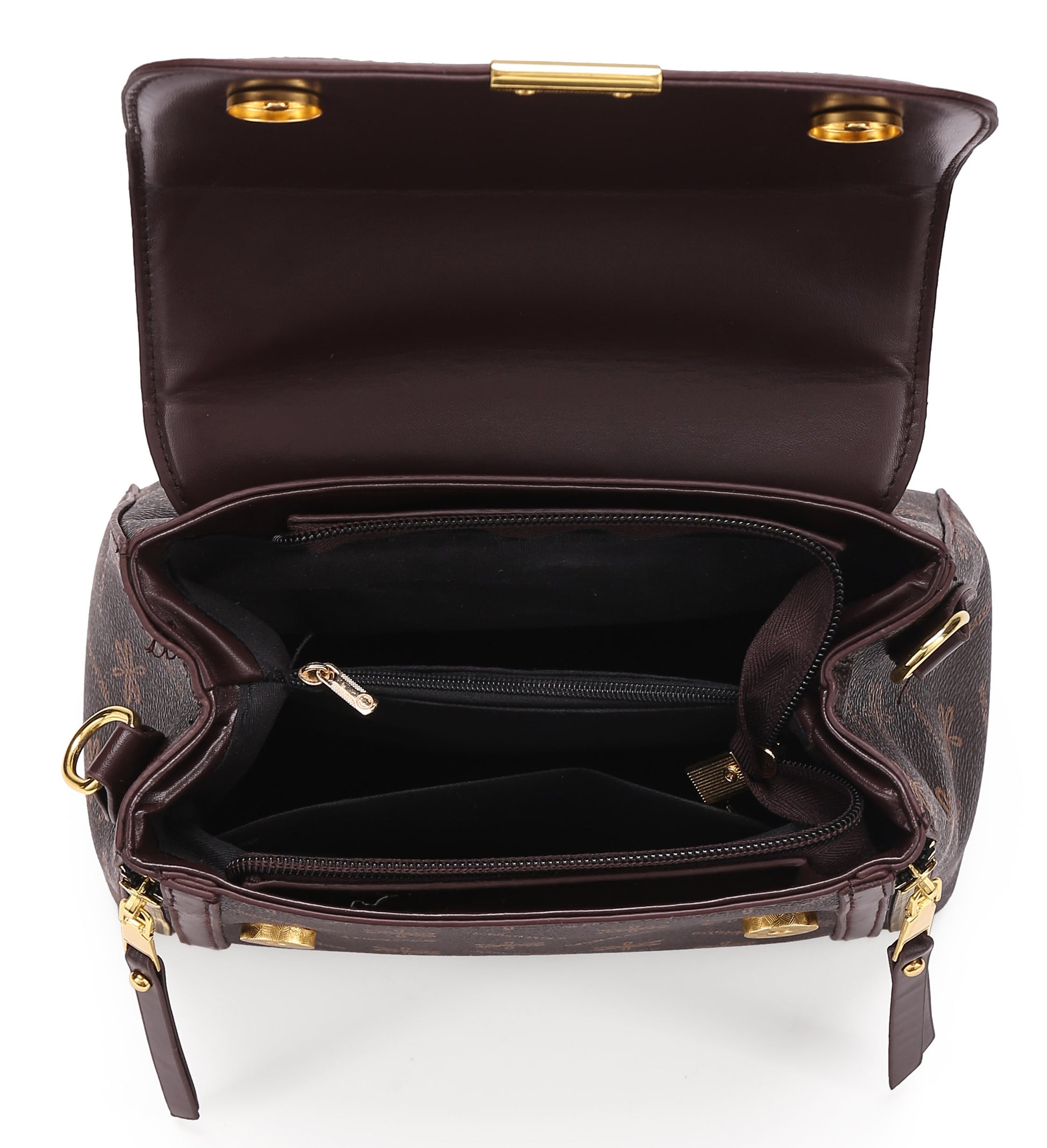 Add a touch of designer-inspired sophistication to your everyday look with the Monogram Charm Bag. Crafted in a rich brown tone and adorned with a timeless monogram-style pattern, this bag exudes elegance in every detail.
