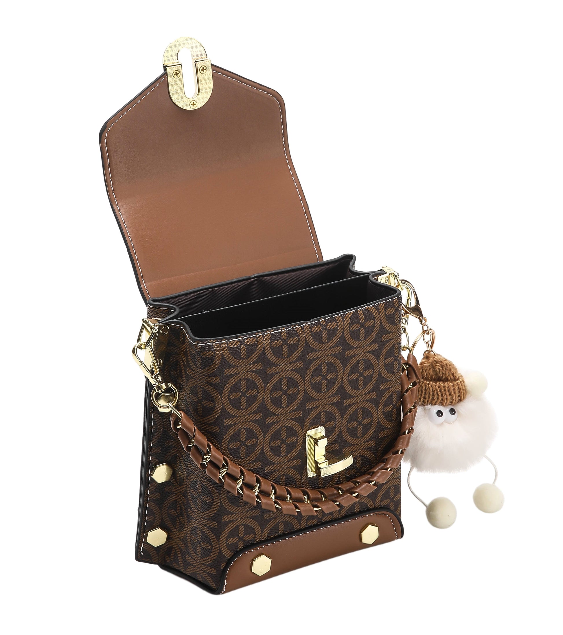 The solid brown top flap and trim give it a refined finish, while the compact size makes it perfect for carrying just the essentials — without compromising your style. Whether you're dressing up denim or adding flair to your co-ords, this bag brings the perfect dose of everyday luxe.