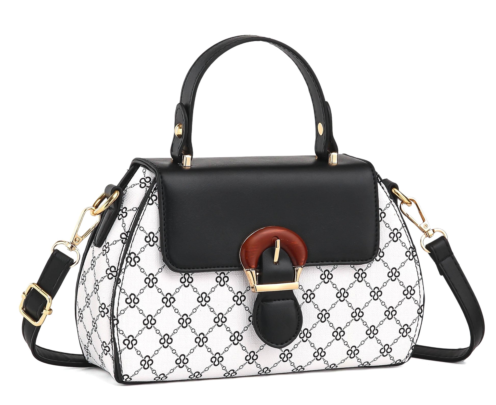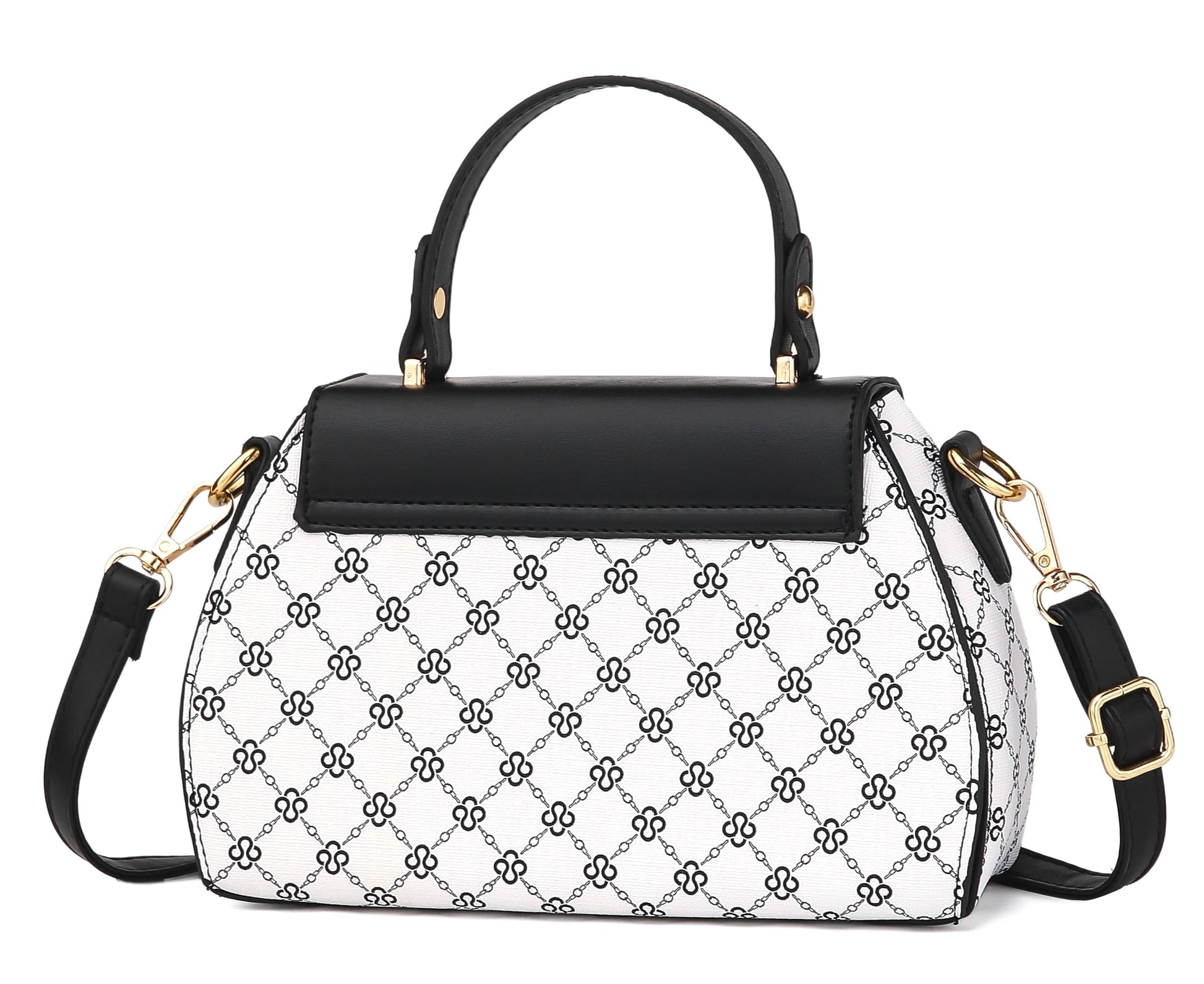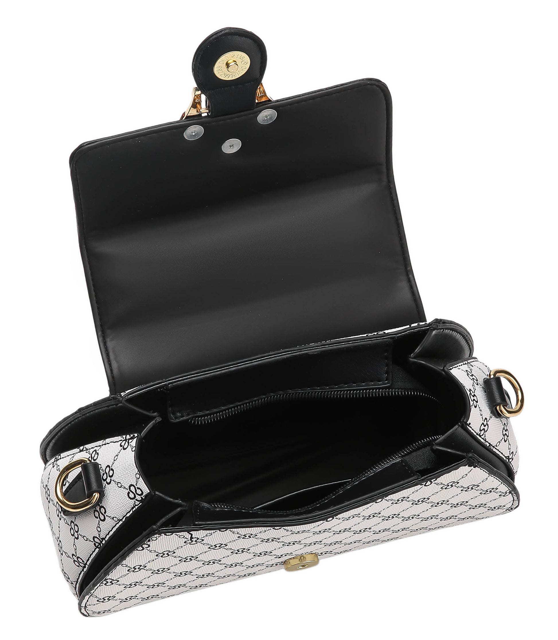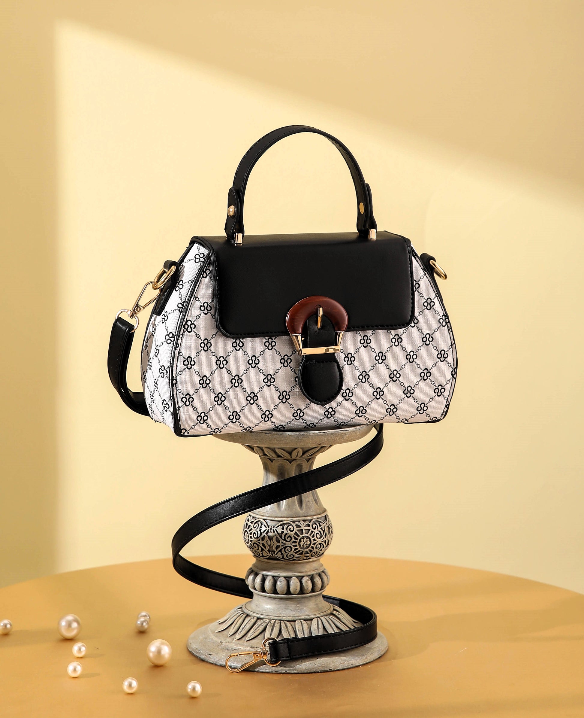 Elevate your everyday style with the effortlessly bold Monochrome Chic. This structured satchel is all about balance — blending classic sophistication with modern flair. Featuring a striking black-and-white geometric pattern, it’s finished with a sleek black flap that adds polish to the design.