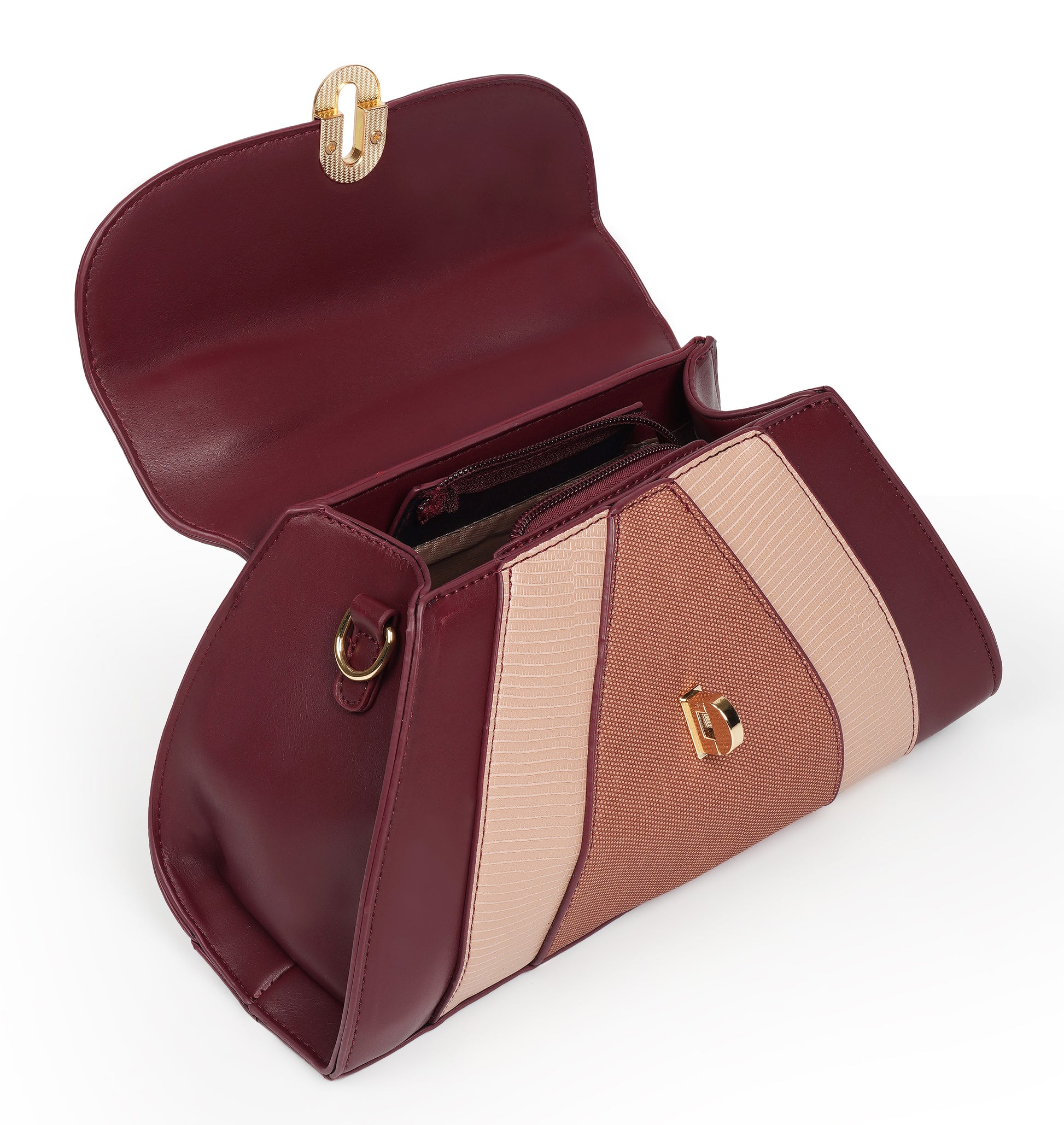 π Elevated Details: The polished gold-tone hardware, uniquely accented with a matching burgundy detail on the lock, creates a bespoke feel.