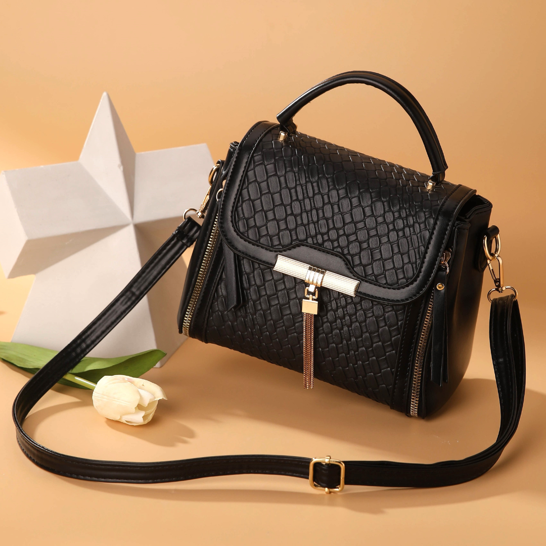 Step up your style game with the Croc Charm Satchel, a perfect fusion of luxe texture and sophisticated design. This stunning black handbag features a crocodile-embossed flap that adds bold character and a refined edge to your outfit. Whether you're headed to a brunch, boardroom, or a night out, this bag is your statement piece.
