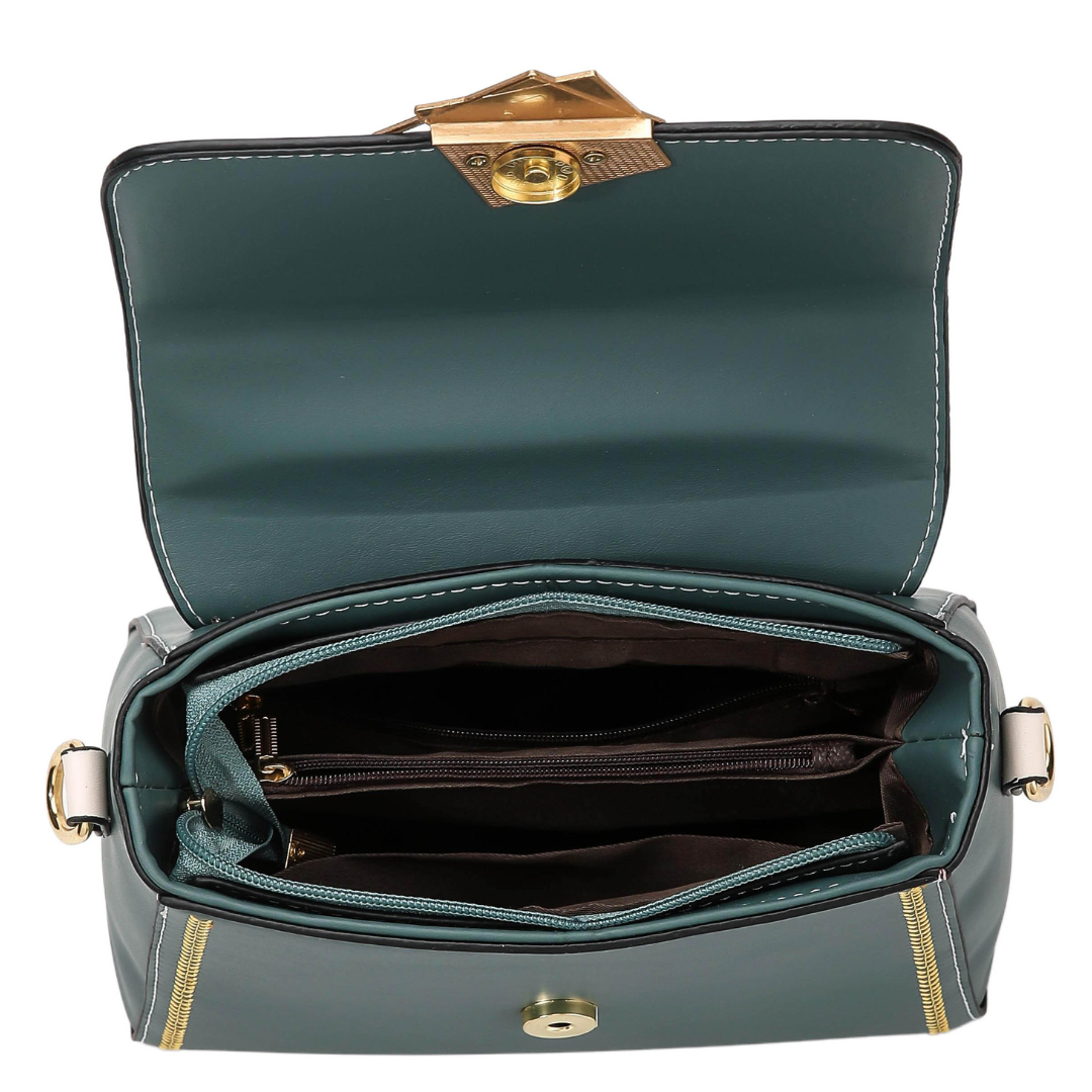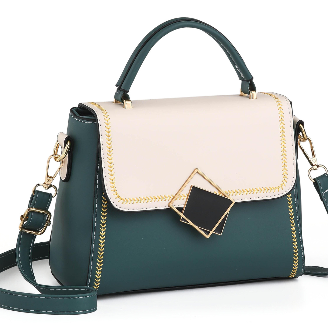 Make a bold entrance with the Diorama Veridian Crossbody—an exquisite fusion of modern design and timeless charm. Crafted from premium vegan leather, this bag showcases a captivating blend of deep veridian green with a soft ivory flap, creating a high-contrast palette that's both elegant and eye-catching.