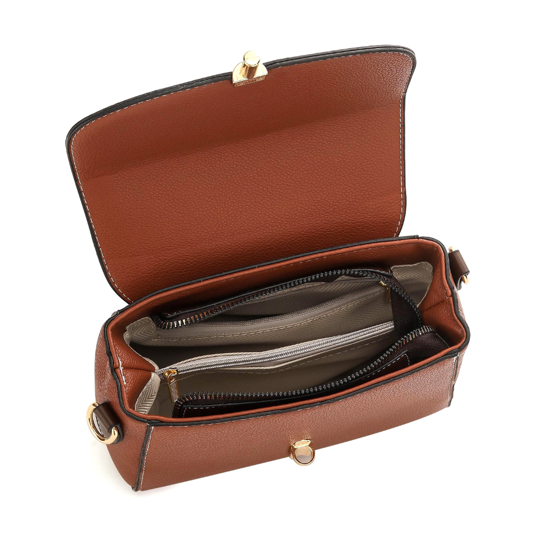 Its compact silhouette is enhanced with a gold-tone logo and a secure turn-lock flap closure that adds a refined touch. Whether you're heading to brunch, running errands, or stepping out for the evening, the adjustable crossbody strap offers effortless comfort and hands-free ease.