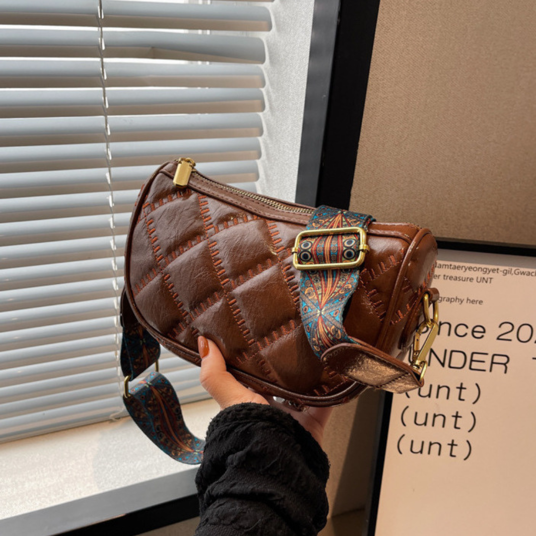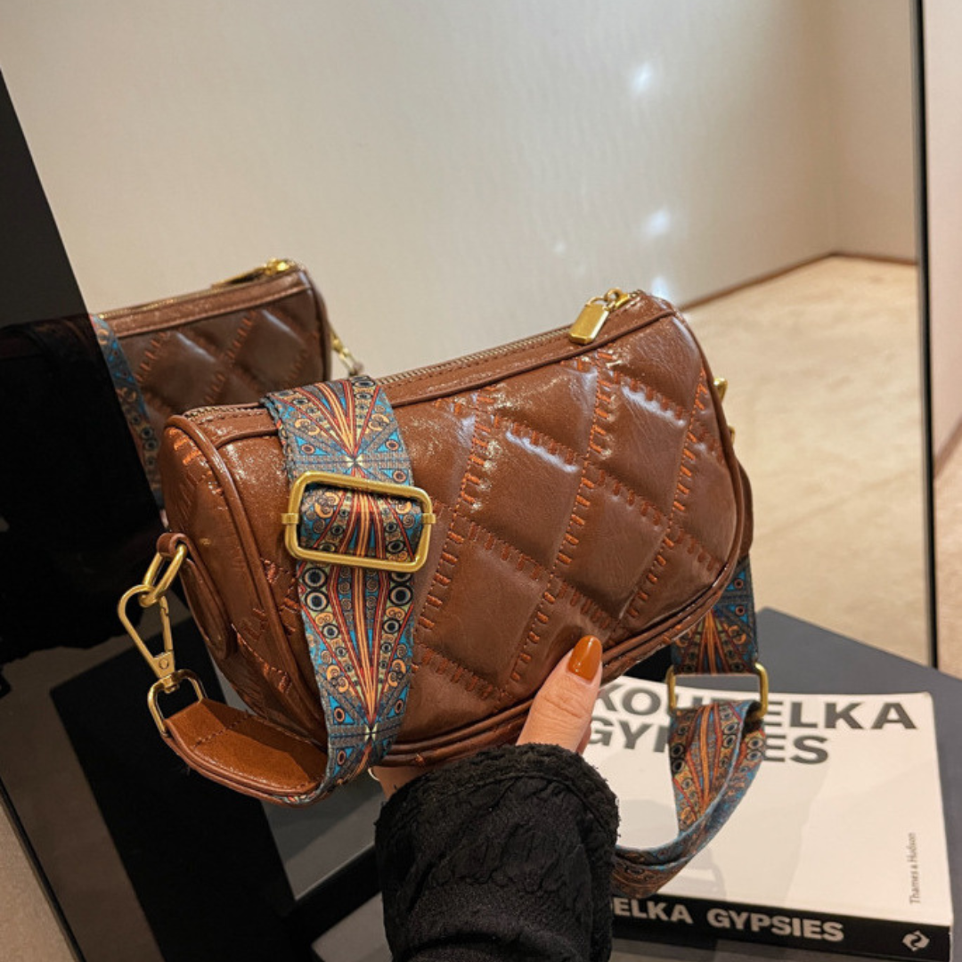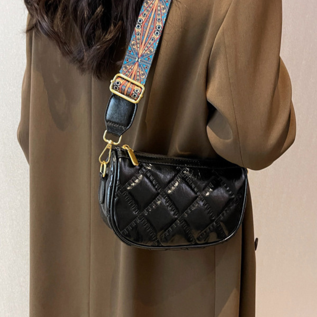 Crafted with a plush diamond-quilted exterior, the bag boasts a soft yet structured silhouette, ideal for keeping your essentials secure and stylish. The real showstopper? Its vibrant embroidered strap — bold, colorful, and full of character. Whether you're headed to a music festival, brunch date, or a casual workday, this bag blends functionality with fearless fashion.