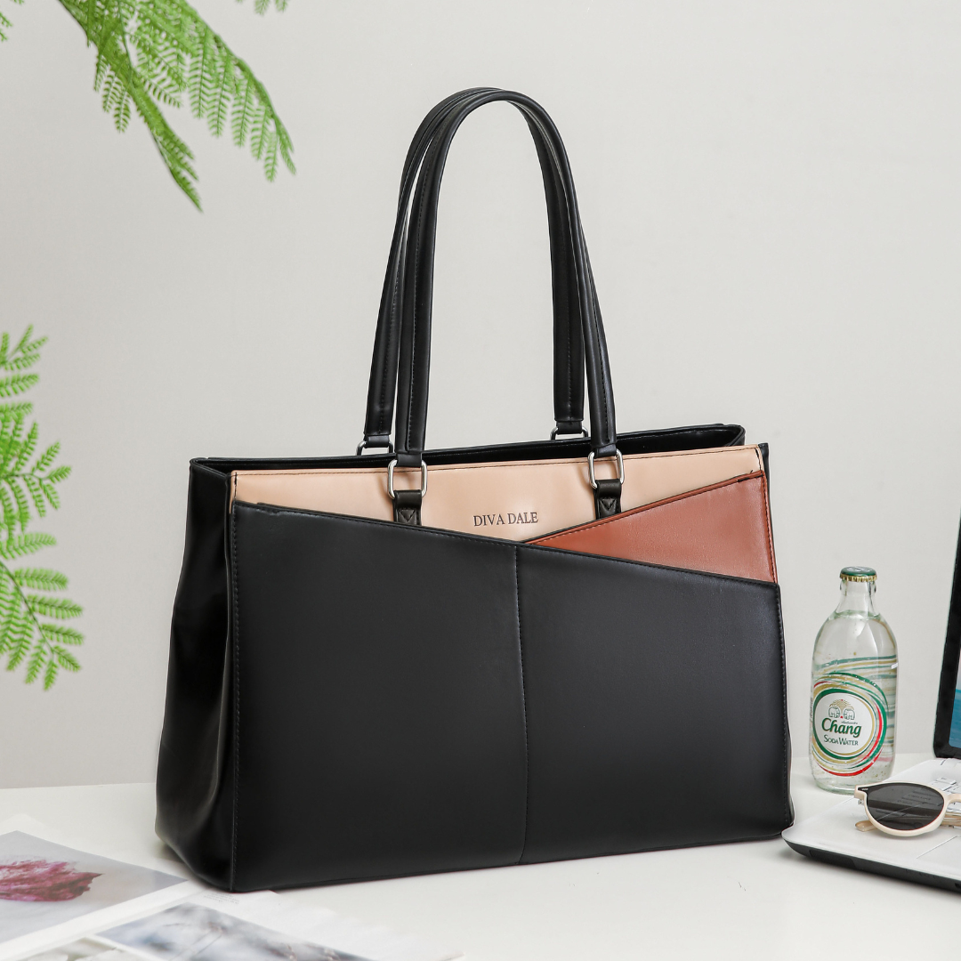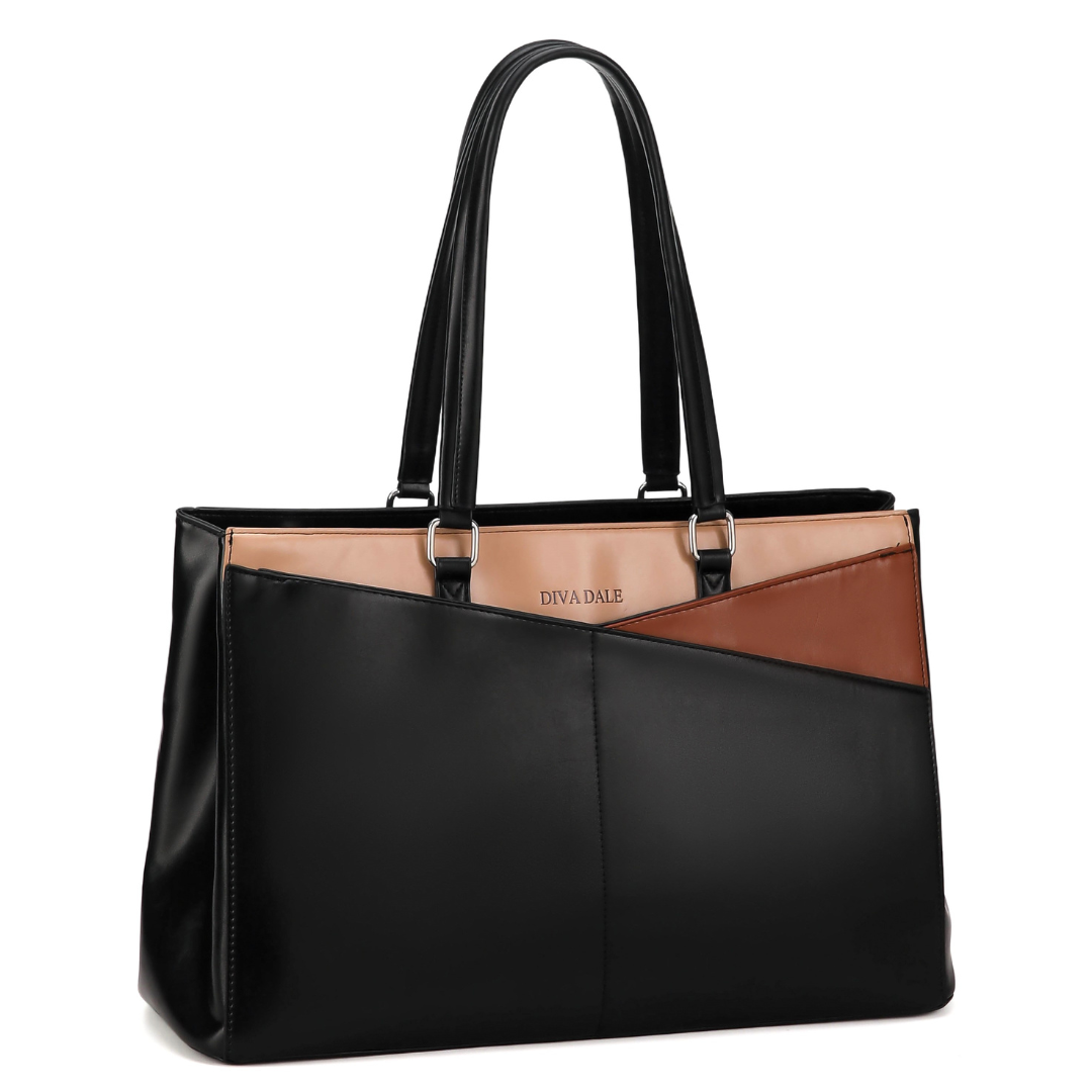 Step into power and style with The Vanguard Brief — a premium executive tote designed for the modern, ambitious woman. With its sharp geometric color-block design in classic black, warm tan, and deep brown, this structured laptop bag makes a bold style statement while keeping functionality at the forefront.