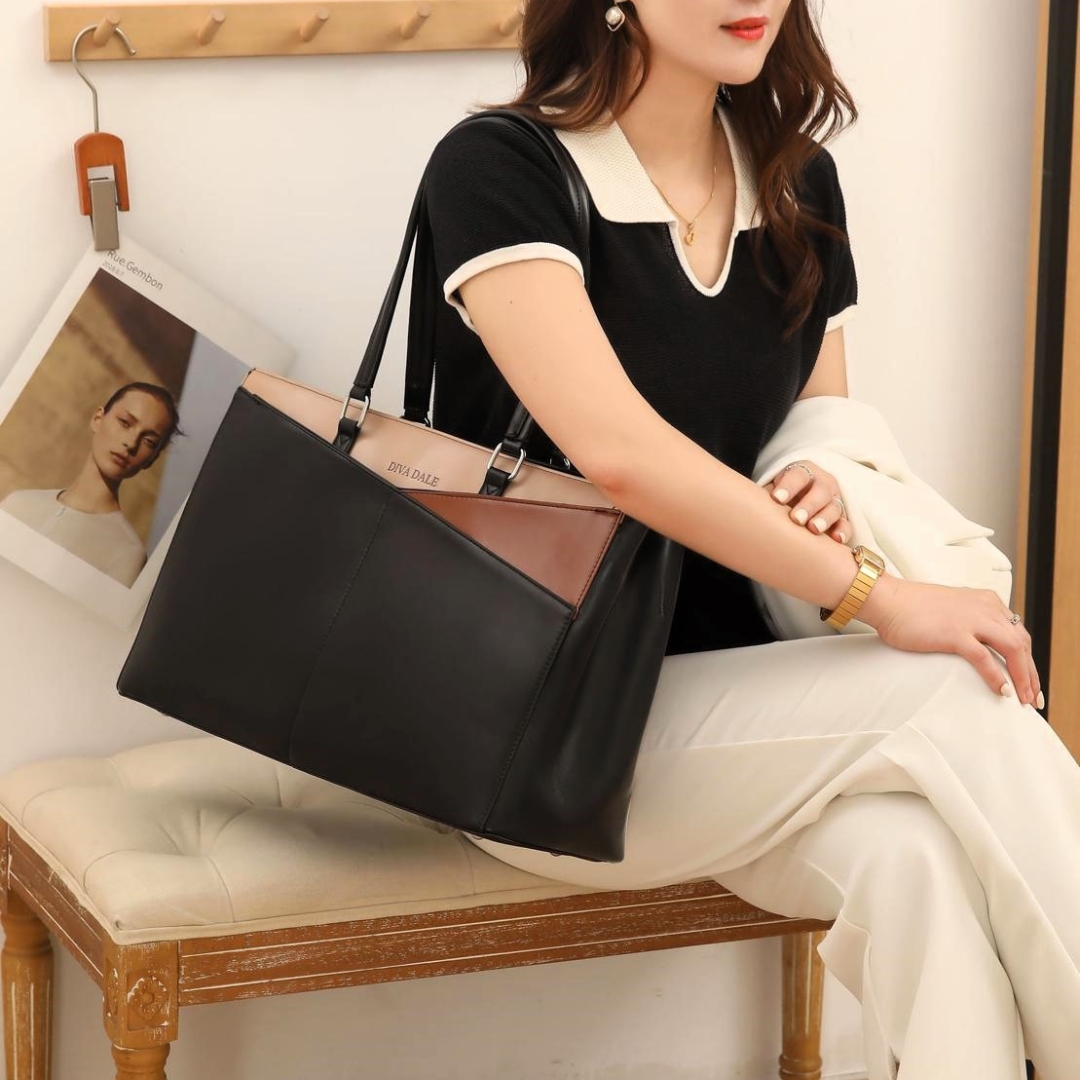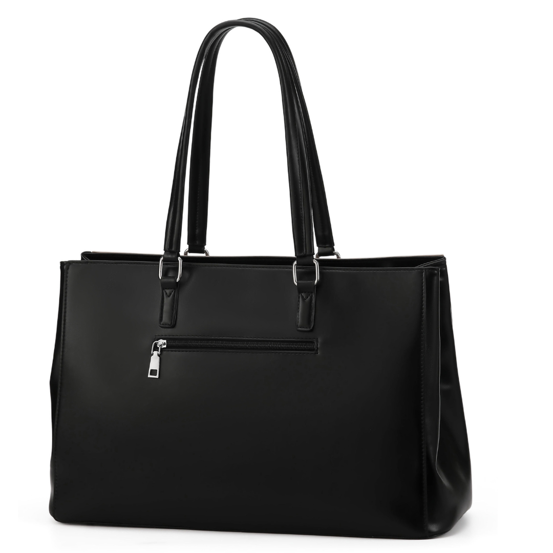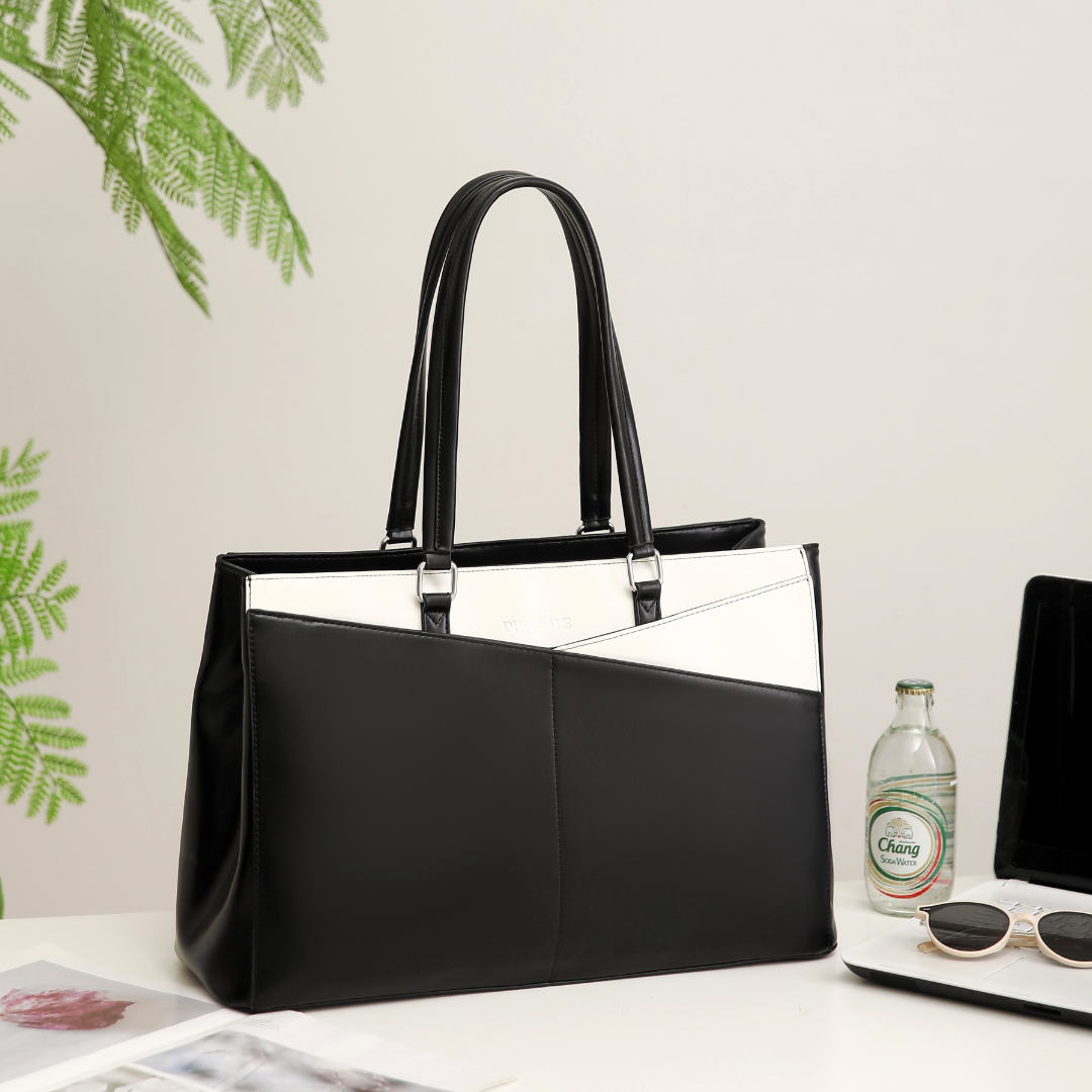 Crafted from high-quality faux leather with meticulous attention to detail, it features sturdy top handles, a sleek silhouette, and a spacious interior that comfortably fits your laptop, charger, documents, and other workday essentials. Whether you're heading into a meeting, co-working space, or airport lounge, this bag ensures you carry your confidence wherever you go.