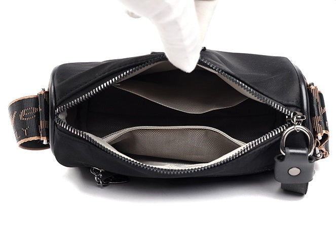 🎒 Wide, patterned strap for comfortable hands-free carry